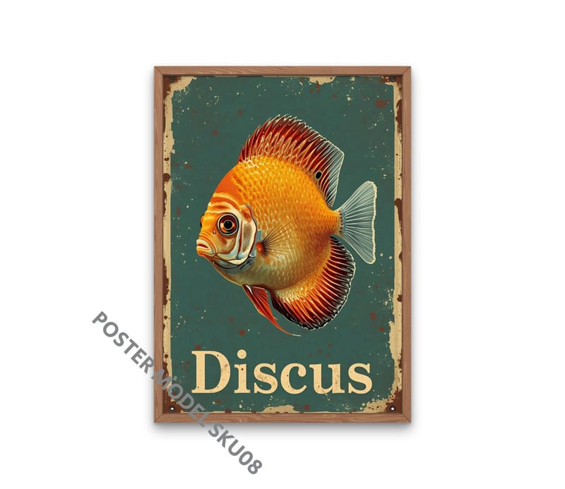 הפוסטר בסגנון רטרו וינטג' דגם דג דיסקוס כתום הוא פריט עיצובי מרהיב שמכניס צבע, חיים ואווירה ימית לכל חלל.